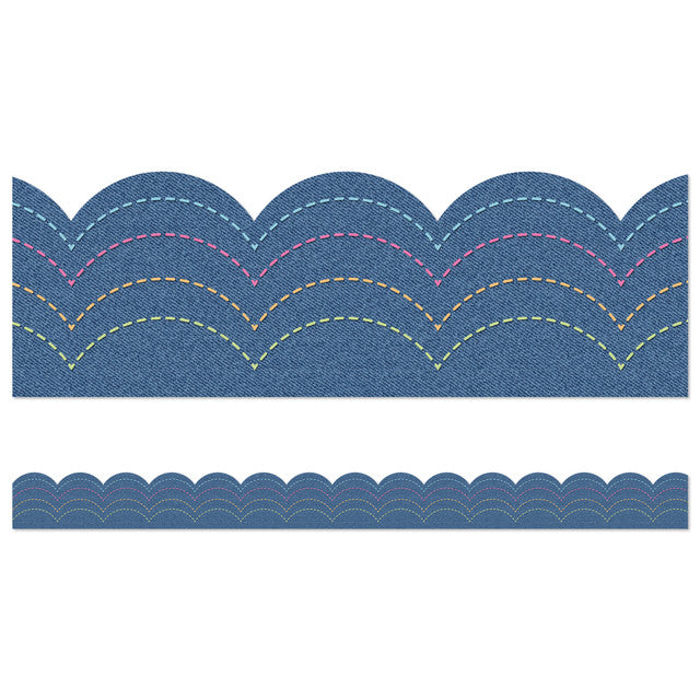 ¡Agregue diseños modernos a la decoración de su salón de clases decorando su espacio de aprendizaje con los bordes para tablero de anuncios de mezclilla Carson Dellosa Crafty and Cool!