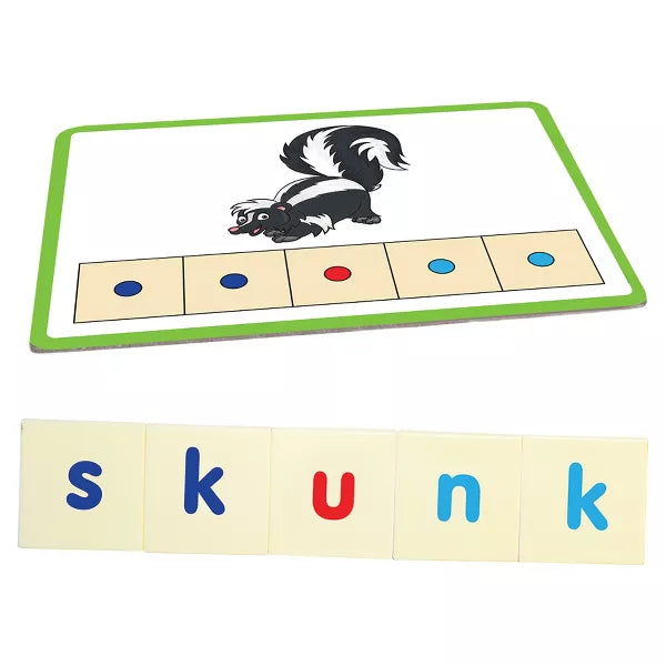 Funciona con los bloques CVC Tub of Tri (se venden por separado), que permiten a los niños construir palabras y colocarlas encima de la tarjeta.