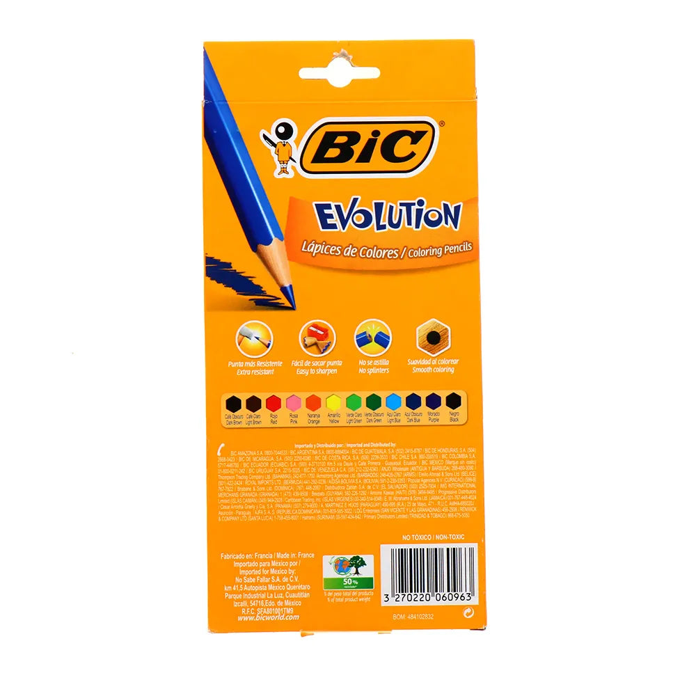 Deja que tu hijo llene su lienzo de color y no apagues su imaginación. Colores Bic Evolution son tu aliado para dejar volar la creatividad de los peques con este juego de 12 tonos diferentes. Además, no se astillan. Incluye 2 lápices gratis para que llegues completo a tu primera clase.