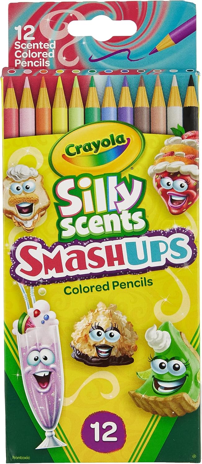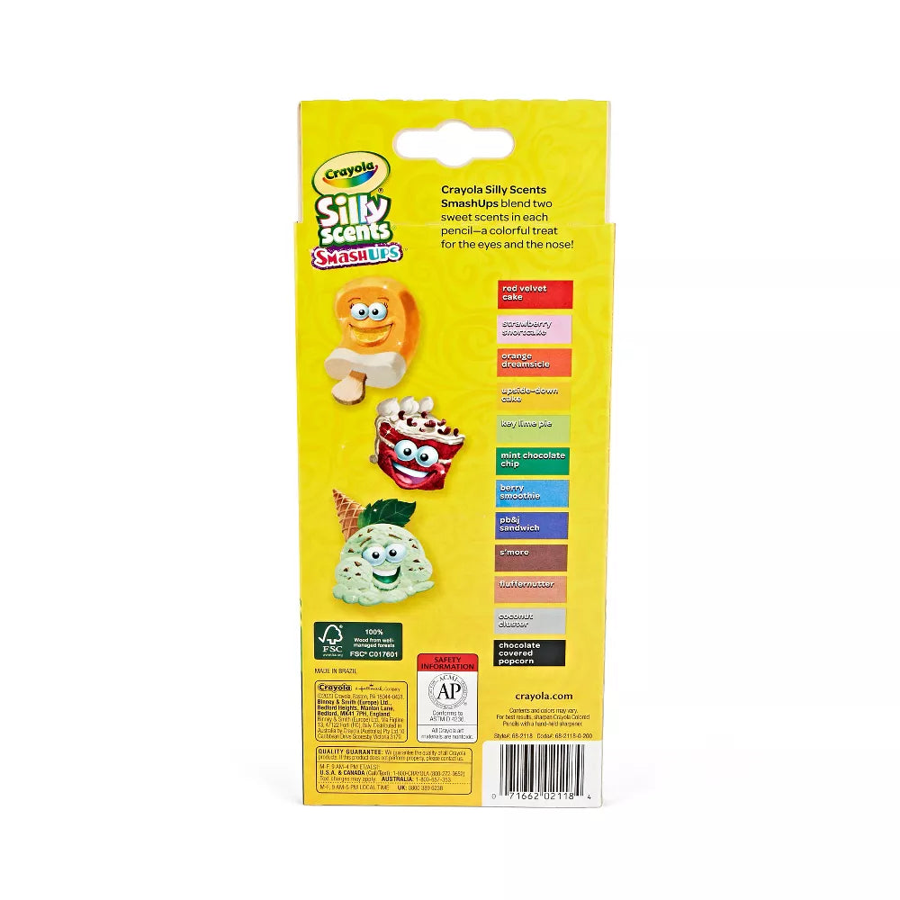 LÁPICES DE COLORES PERFUMADOS CRAYOLA: Incluye 12 lápices de colores Silly Scents en 12 colores y deliciosos aromas Smash Up.