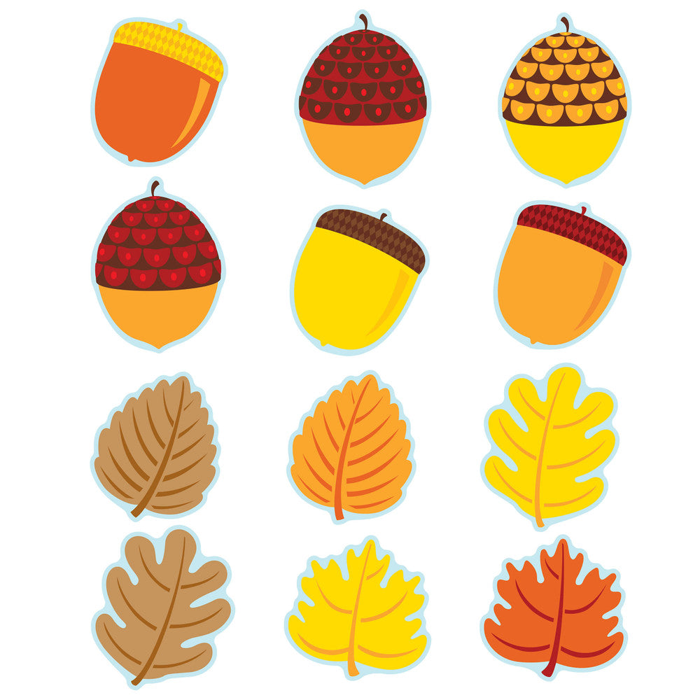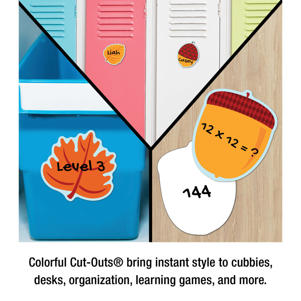 Los recortes de colores surtidos de Hojas y Bellotas® son versátiles: se pueden usar para etiquetas de nombre, juegos, actividades de calendario y mucho más. Dale un toque especial a cualquier ambiente decorando con este festivo y encantador set.