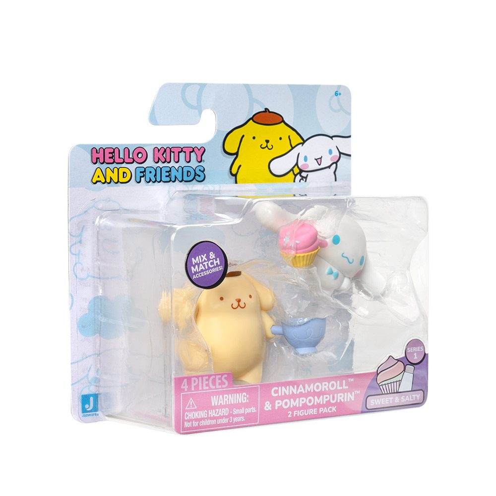 Hello Kitty | Pack con 2 figuras de plástico. Miden 5,08 cm (Surtidos: Hello Kitty Pizza y Cinnamoroll French Fries – My Melody Fruit Kabob y Hello Kitty Popcorn – Kuromi Corndog y Hello Kitty Smoothie – Pompompurin Hamburger y Cinnamoroll Cinnamon Roll – My Melody Cotton Candy y Kuromi Milkshake – Cinnamoroll Cupcake y Pompompurin Latte) 12 estilos para coleccionar. Personajes favoritos de los fans.
