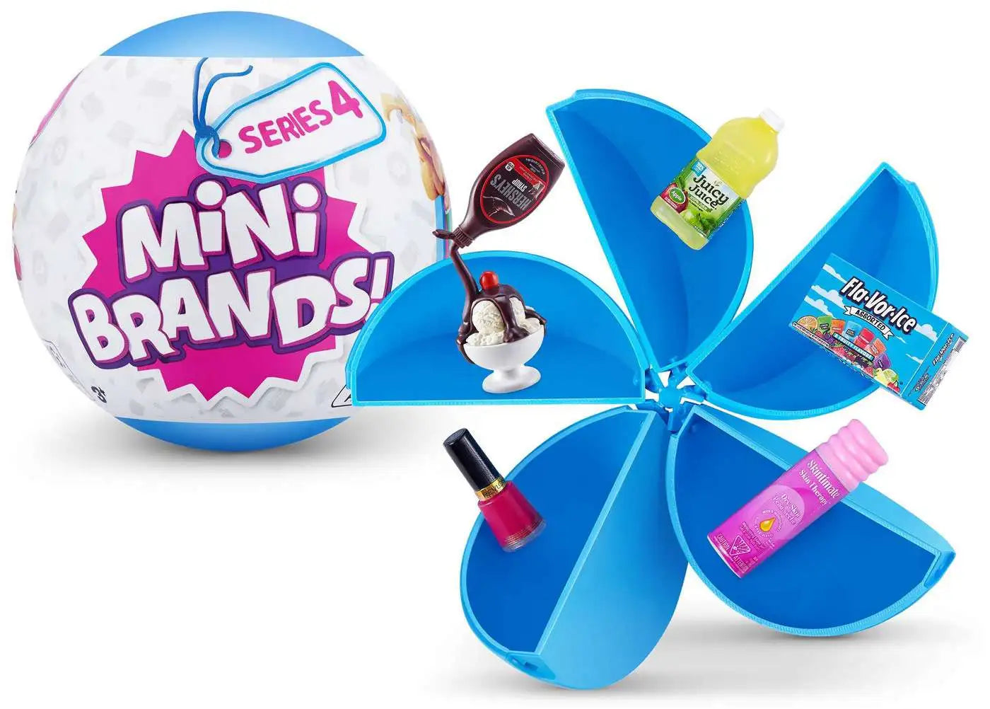 Mini Brands son marcas de compras reales que caben en tus manos! Desenvuelve, despega y revela coleccionables en miniatura de marcas REALES además de divertidos accesorios de compras. ¿Qué 5 sorpresas desempaquetarás? ¡Hay 80 miniaturas TOTALMENTE NUEVAS de tus marcas favoritas para coleccionar, incluidas las raras miniaturas metálicas, las súper raras miniaturas doradas y las nuevas miniaturas de Frozen, súper raras! Encuentra miniaturas de todas las nuevas marcas, incluidas Revlon, Kelloggs y Sunny D. ¡Colecciónalas todas para crear tu propio mundo de compras en miniatura!