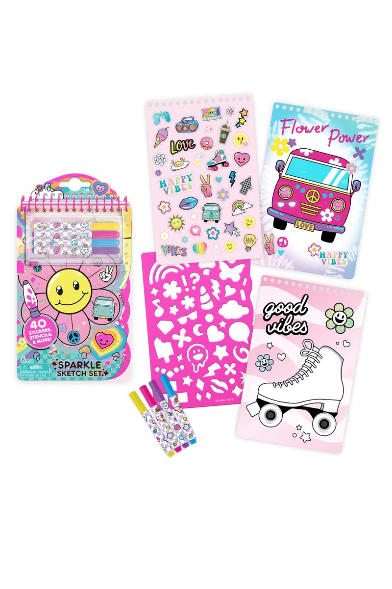 SET DE DIBUJO COMPLETO: Incluye 24 páginas diseñadas para dibujar, una tarjeta de esténcil de plástico, 4 marcadores de colores vibrantes y 40 divertidas pegatinas.