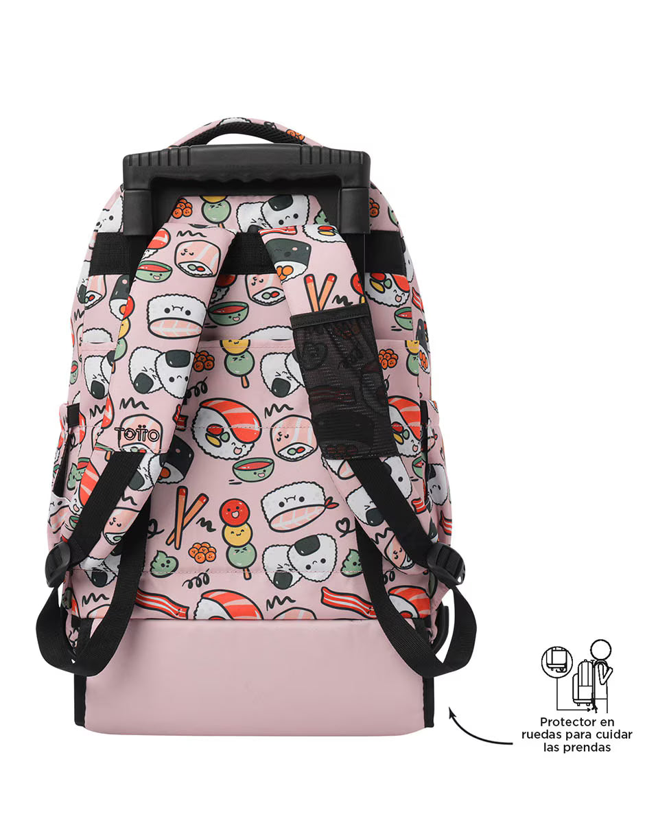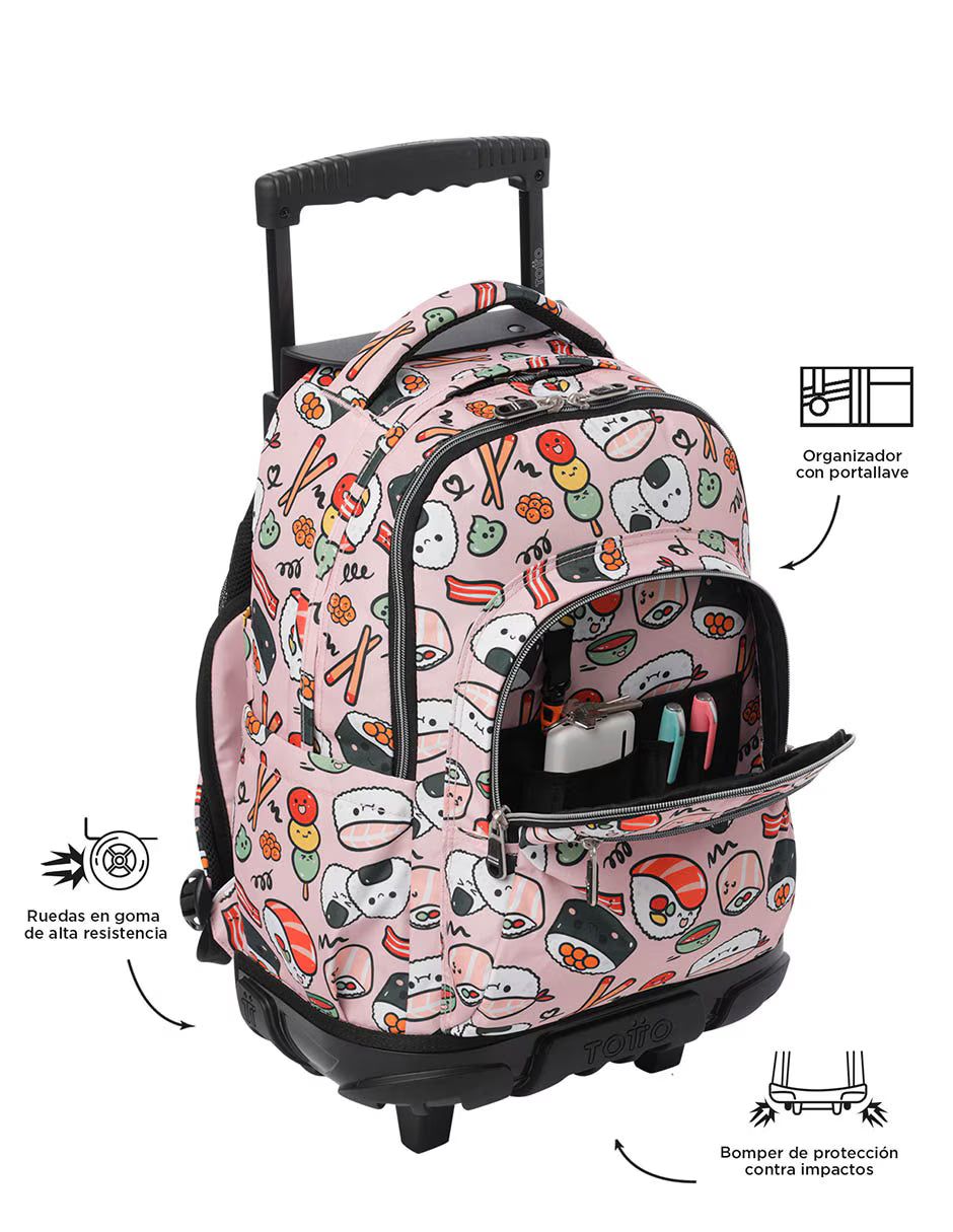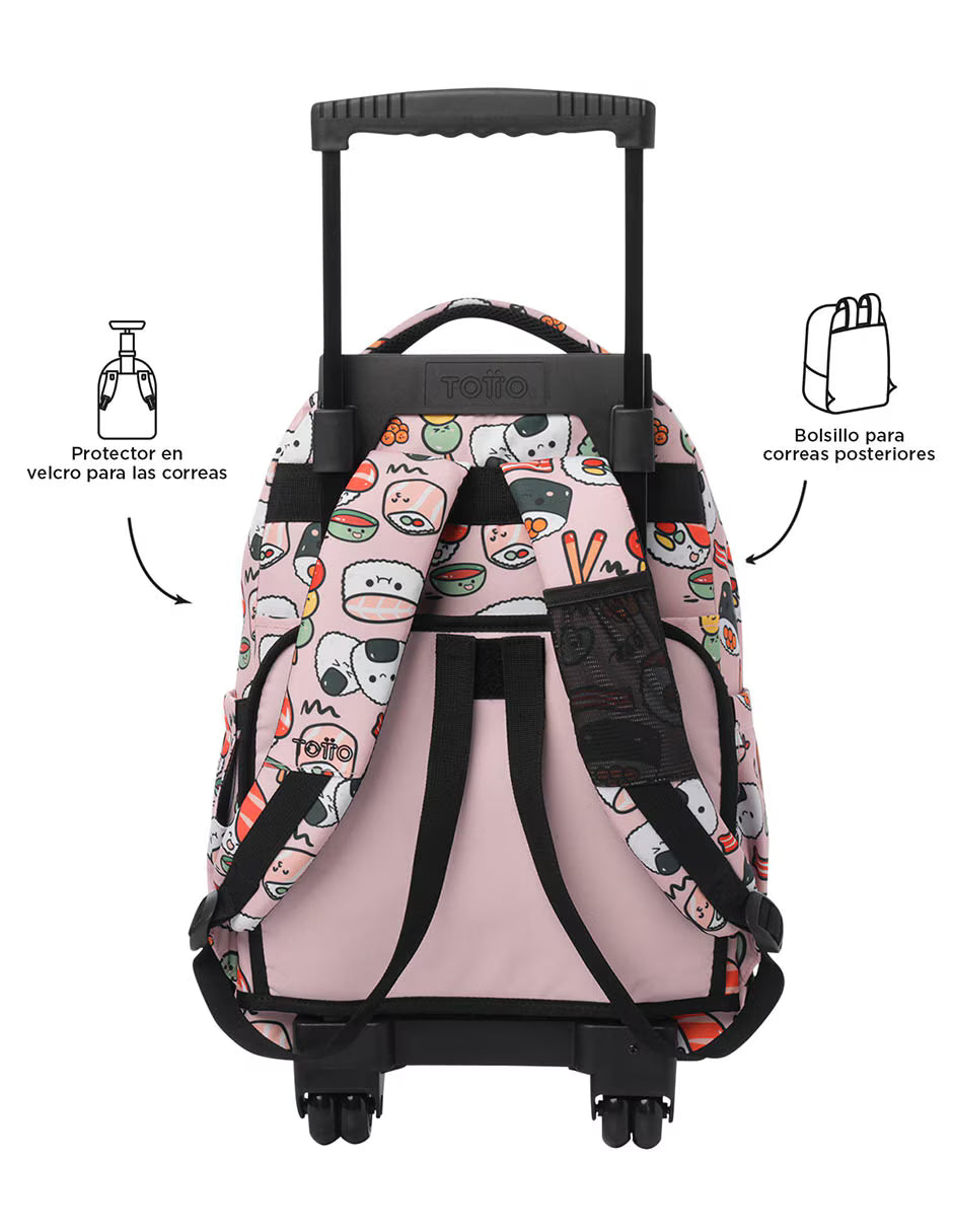 La mochila escolar con ruedas Trolley Ergonómica Niña Sushi Kumi Kawaii 3745328 de Totto es la elección perfecta para las pequeñas aventureras. Con un diseño adorable en tonos rosados que combina estilo y funcionalidad, esta mochila proporciona una capacidad de 25 litros, ideal para llevar todo lo necesario para el día escolar.