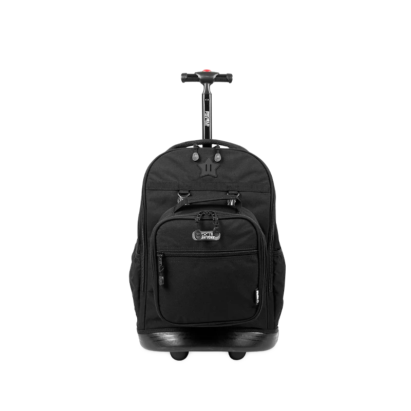 La mochila con ruedas J World DUO con lonchera desmontable es un conjunto vibrante que incluye una mochila con ruedas y una lonchera térmica a juego. La mochila cuenta con un asa telescópica de tres niveles, tirantes acolchados y un compartimento espacioso ideal para libros y chaquetas. Un organizador frontal mantiene los objetos pequeños en orden, mientras que los bolsillos laterales son perfectos para botellas