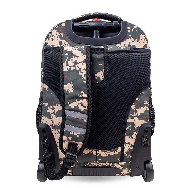 Diseño convertible: Se transforma fácilmente de mochila con ruedas a mochila de tirantes, ideal para escaleras o terrenos irregulares.