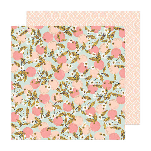 Este papel de doble cara de 12" x 12" es parte de la colección Woodland Grove diseñada por Maggie Holmes para American Crafts. El anverso de este papel tiene un fondo verde claro y está lleno de ramas de frutas y flores blancas. El reverso es de color melocotón con un patrón geométrico blanco. Este papel se puede utilizar para tarjetas, páginas de álbumes de recortes, etiquetas y otros proyectos de manualidades con papel. Este papel no contiene ácidos ni lignina. Este papel está fabricado en EE. UU.