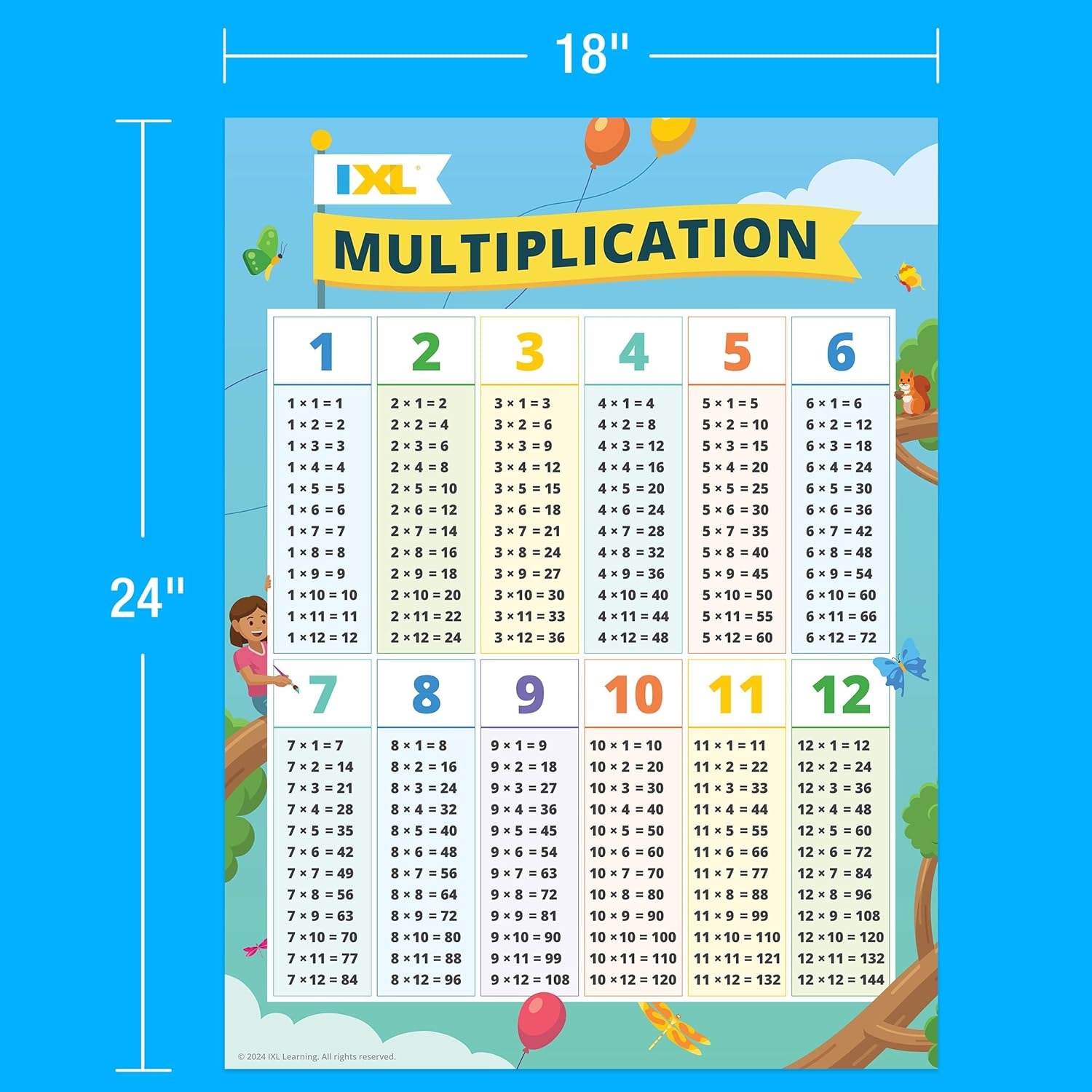 HABILIDADES MATEMÁTICAS IMPRESCINDIBLES: El póster de multiplicación IXL presenta las tablas de multiplicar esenciales del 1 al 12. Perfecto para exhibir en casa o en el aula, este atractivo póster refuerza las tablas de división para ayudar a los estudiantes a desarrollar confianza y rapidez mientras practican matemáticas.