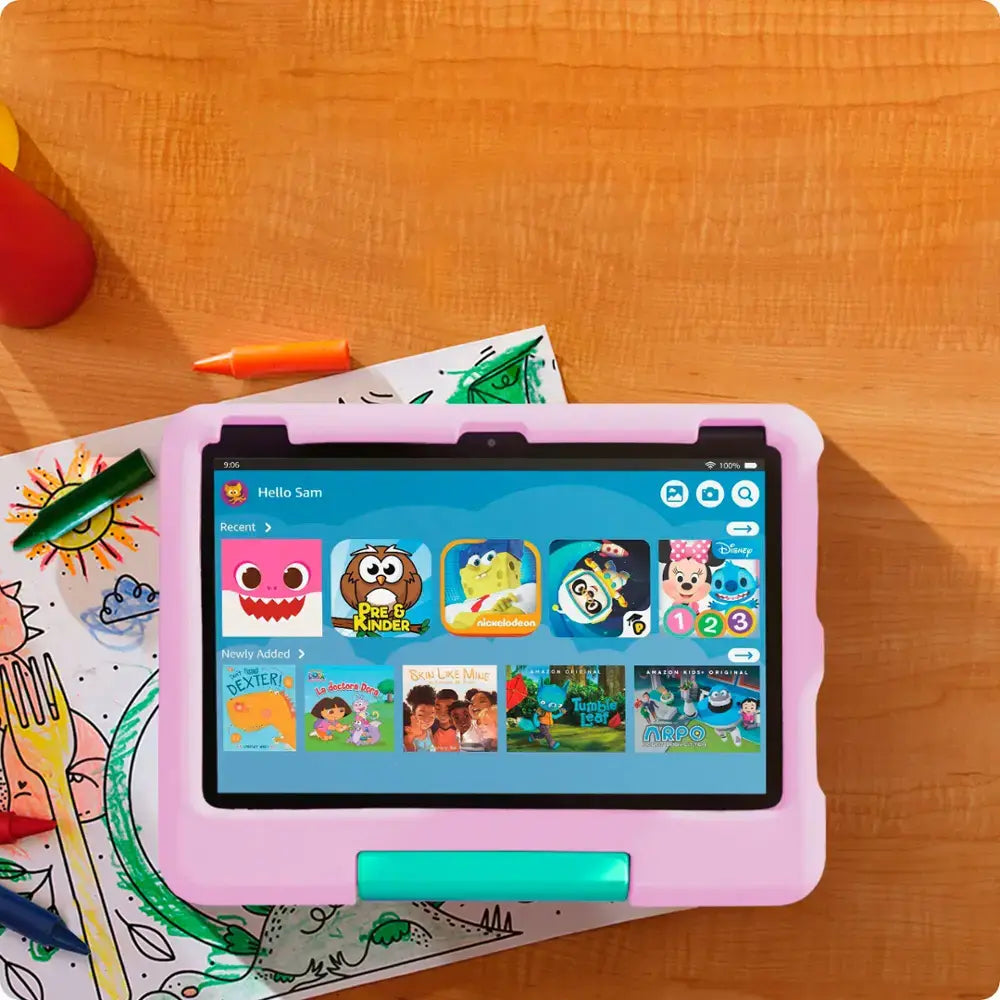 Diseñada para niños y amada por los padres, esta tableta para niños de 3 a 7 años está diseñada para durar, con controles parentales robustos, una pantalla brillante Full HD de 10,1" y 1080p y un rendimiento un 25 % más rápido que la generación anterior. Además, la funda a prueba de niños con soporte resiste todas sus aventuras. Diseñado pensando en las manos pequeñas. La funda duradera protege contra caídas y golpes cotidianos. Cada tableta Fire Kids incluye una garantía de 2 años sin preocupaciones. Si se rompe, devuélvela y la reemplazaremos gratis durante dos años. En la caja: tableta Fire HD 10 (13.ª generación), funda a prueba de niños, cable USB-C (2.0), adaptador de corriente de 9 W y guía de inicio rápido.