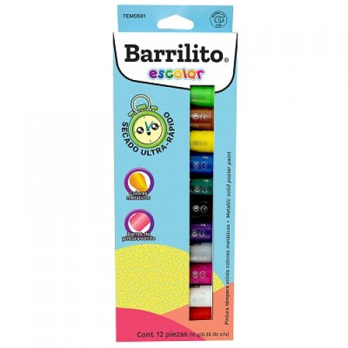 TEMPERA BARRA SOLIDA METALICOS 12CLRS