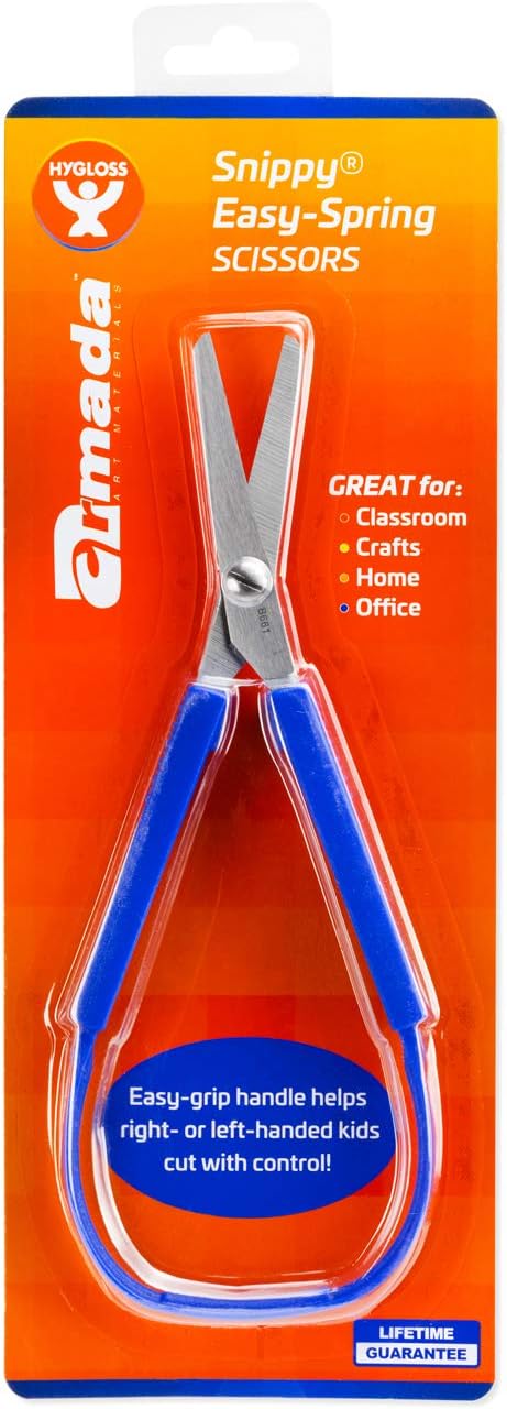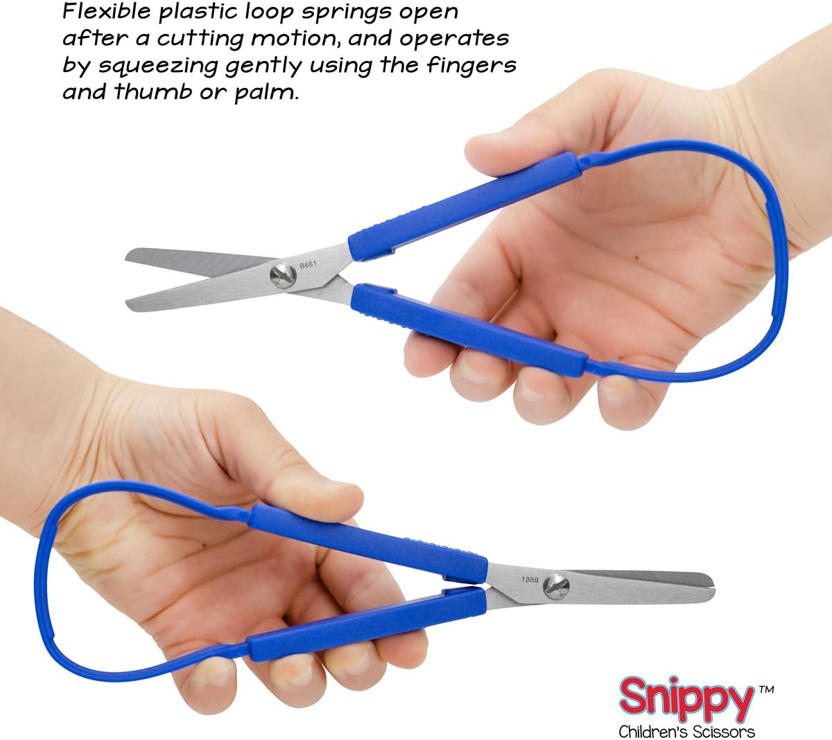 Las tijeras Snippy Easy Spring Loop son ideales tanto para adultos como para niños pequeños que están desarrollando habilidades motoras. Las asas de fácil agarre están hechas de plástico duradero en forma de bucle. Simplemente aprieta el lazo flexible suavemente para cortar y las tijeras volverán a abrirse. Las cuchillas están hechas de acero inoxidable templado de calibre pesado para un corte preciso y limpio. Las asas de resorte en estas tijeras hacen que sean fáciles de sostener para los niños, lo que les permite cortar con control. Nuestras tijeras están diseñadas para cortar papel, materiales para álbumes de recortes, fotos, cartón y mucho más. El tamaño de 7.75 pulgadas de estas tijeras con resorte las hace ideales para manos pequeñas o grandes y están diseñadas para uso diestro o zurdo. Son perfectos para usar en el aula o en el hogar.